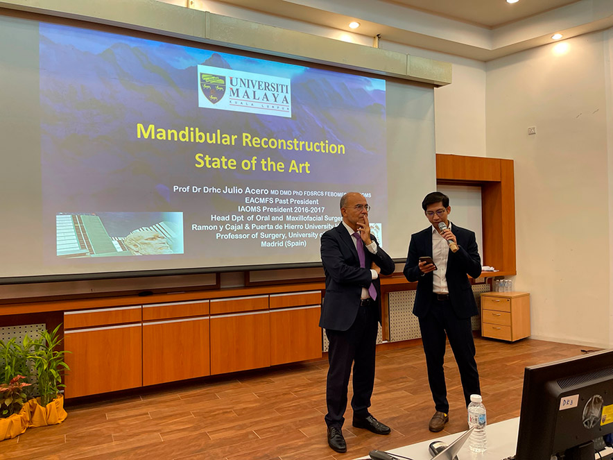 Al término de su estancia se celebró una sesión académica en la que recibió el reconocimiento por parte de la universidad, pronunciando una conferencia sobre el estado del arte de la reconstrucción mandibular.